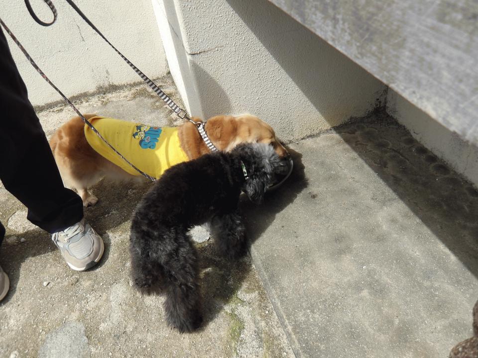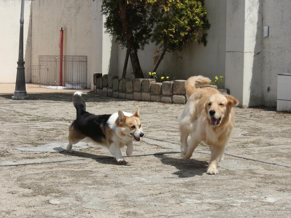 コーギーのリオちゃん・ゴールデンのアヤちゃん 久しぶりの