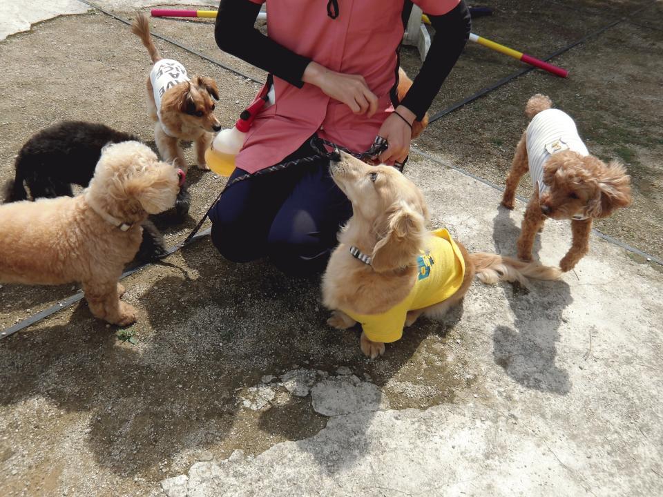 スライドで犬についての事前学習を行った後に4頭の犬達で