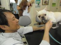 動物のお医者さん(獣医)に来てもらいハナちゃんの聴診にチャレンジ!