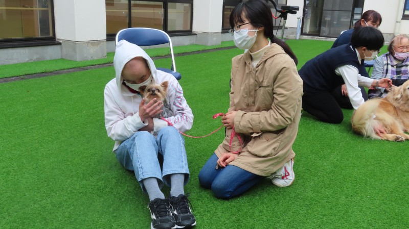 MIX犬のタルタル君・もずくちゃん スタッフと一緒に小型犬の