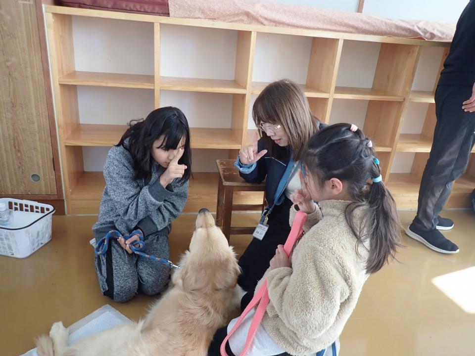 少し犬が怖い児童もいましたが、先生やスタッフの補助で一緒に